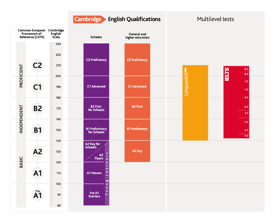 Linguaskill Certificated General ist ein computergestützter und adaptiver Englischtest von Cambridge University Press & Assessment. Er bewertet präzise Ihre Sprachfähigkeiten in den Bereichen Lesen, Hören, Schreiben und Sprechen gemäß dem Gemeinsamen Europäischen Referenzrahmen (GER) von Niveau B1 bis C2.